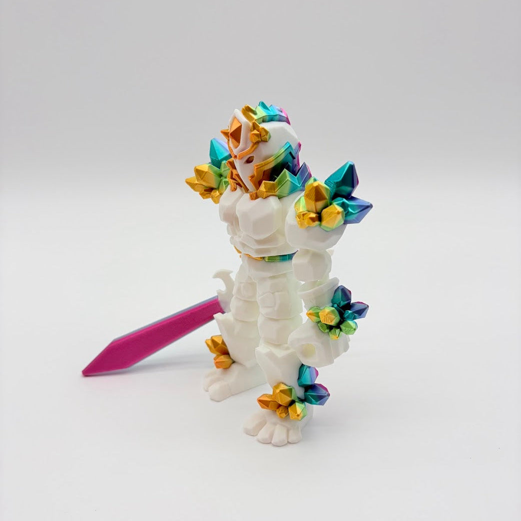Meet the Crystal Warrior — a bold, 7-inch articulated guardian with gem-like crystal armor and a removable sword he can hold, pose, and display in endless battle-ready stances. With satisfying movement at the arms, legs, and body, this figure is perfect for desk décor, shelf displays, gifting, or adding to any fantasy collection.